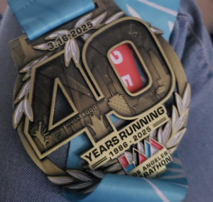 The marathon was on March 16, at the Dodger stadium to Santa Monica Blvd & Avenue of the Stars, Century City, running 26.2 across LA with an additional mile to get into the school at the finish line.
